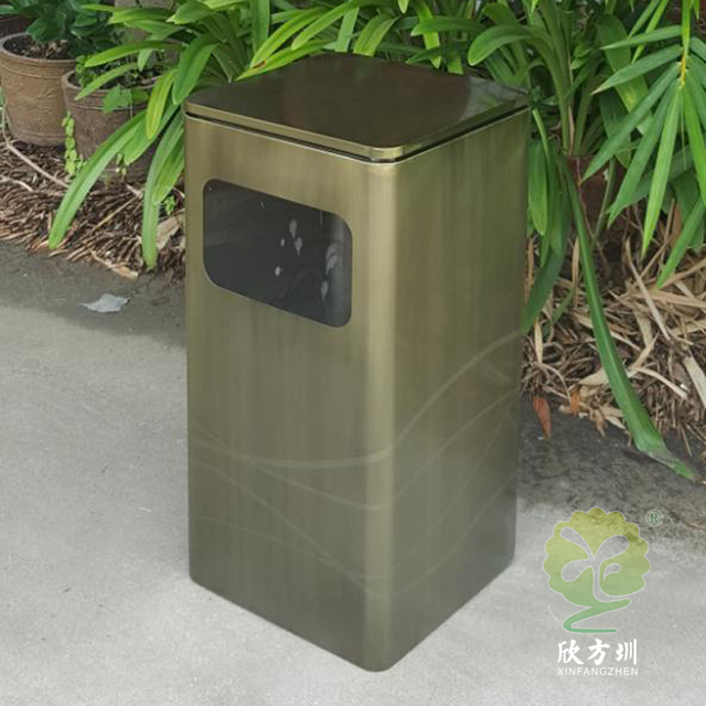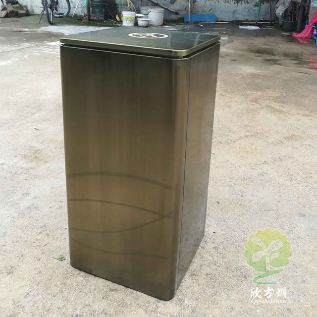青古銅色商場不銹鋼果皮箱是欣方圳設計生產的一款經典高檔垃圾桶,這款垃圾桶雖然使用不銹鋼制作而成,但是外形采用了青色仿古銅豎行拉絲和做了防指紋處理,使其看起來有一股自然青色仿古銅氣質,特別適合各種室內外購物商場、電梯口、等場景使用。這款不銹鋼垃圾桶外表經過防腐工藝處理,防水防腐蝕、經久耐用、工藝精湛、物美價廉。如果你對這款垃圾桶感興趣,請直接聯系我們報價。