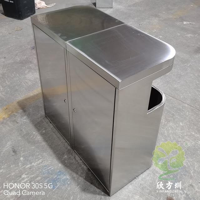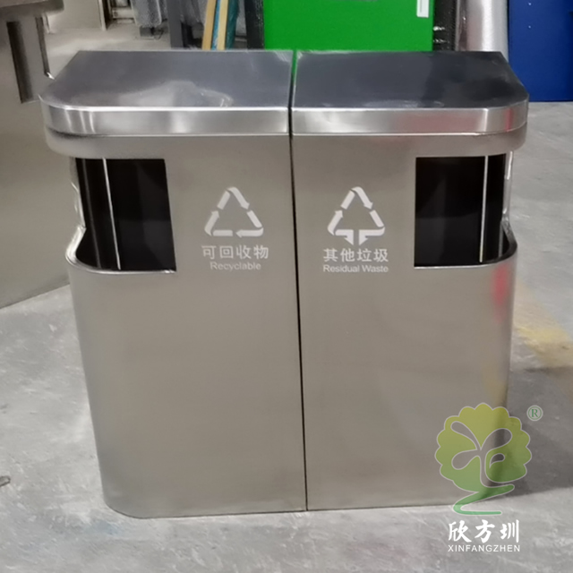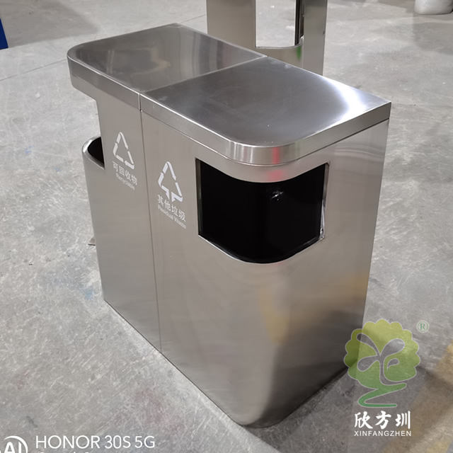 室內外環保組合式不銹鋼分類垃圾桶是欣方圳設計生產的一款經典熱銷垃圾桶,這款垃圾桶雖然使用不銹鋼制作而成,但是外形采用了仿木設計,使其看起來有一股自然不銹鋼本色氣質,特別適合各種歷史景區、戶外公園、別墅小區、學校廣場等場景使用。這款不銹鋼垃圾桶外表經過防腐工藝處理,防水防腐蝕、經久耐用、工藝精湛、物美價廉。如果你對這款垃圾桶感興趣,請直接聯系我們報價。