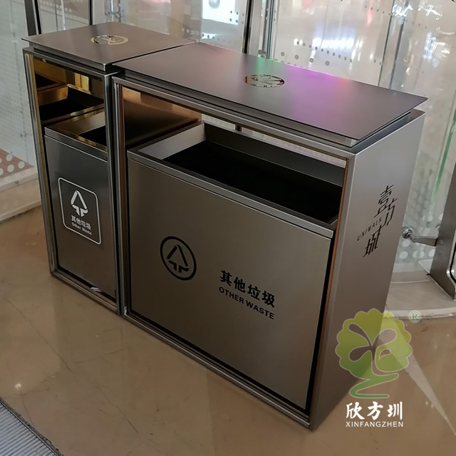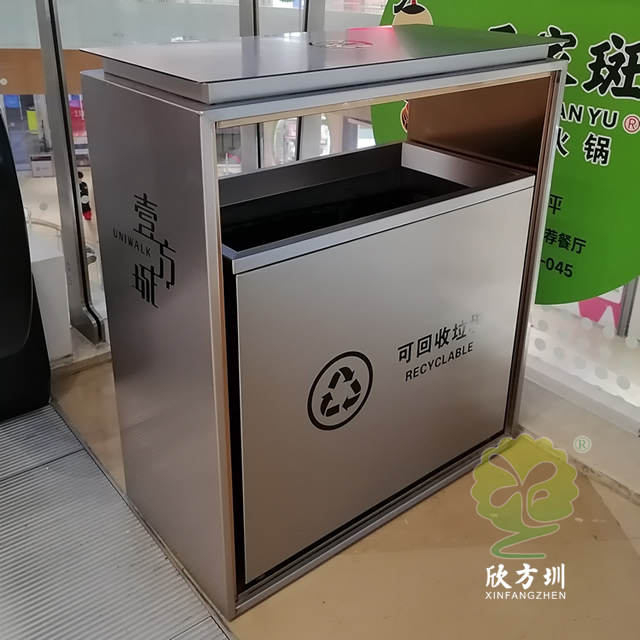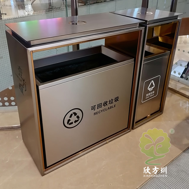 商場滑軌組合分類不銹鋼垃圾桶是欣方圳設計生產的一款經典熱銷垃圾桶,這款垃圾桶雖然使用不喜歡制作而成,但是外形采用了方形分類,使其看起來有一股自然大方氣質,特別適合各種商場、電梯口、酒店、寫字樓場景使用。這款垃圾桶外表經過防腐工藝處理,防水防腐蝕、經久耐用、工藝精湛、物美價廉。如果你對這款垃圾桶感興趣,請直接聯系我們報價。